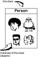 A concept commonly used in the context of object oriented software development. A class is an abstract concept that describes the essential nature of a group of objects with common properties and behaviours. For example the class person distills the common characteristics of real life people.